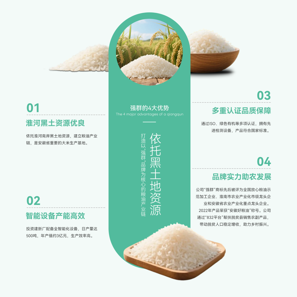 - 壽縣強群糧油貿(mào)易有限公司成立于2011年,座落在淮南市壽縣澗溝鎮(zhèn),是一家集種植、加工、收儲、銷售于一體、以生產(chǎn)中、高檔質優(yōu)、特色類大米為主的綜合性企業(yè)。公司依托準河南岸的黑土地資源,打造以“強群”品牌為核心的糧油產(chǎn)業(yè)鏈,是安徽省重要的大米生產(chǎn)基地。 為響應市場增長需求,公司2021年啟動二期擴產(chǎn)工程,其中新生產(chǎn)廠區(qū)建設投入資金近億元,建設現(xiàn)代化新生產(chǎn)線,總占地面積約4000...